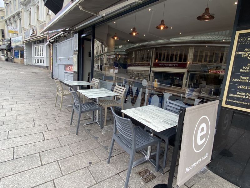 Ewings Cafe is in an excellent, highly visible trading position close to Torquay’s busy Harbourside which is in the process of being newly developed including the opening of the Hamilton Hilton and Premier Inn Hotels which offer 250 guest bedrooms. The area benefits from many independent retailers,  bars and restaurants and benefits of several pay & display car parks close by.  As the development of the area continues the Harbour and surrounding area will become the ‘Hub’ of Torquay Town.