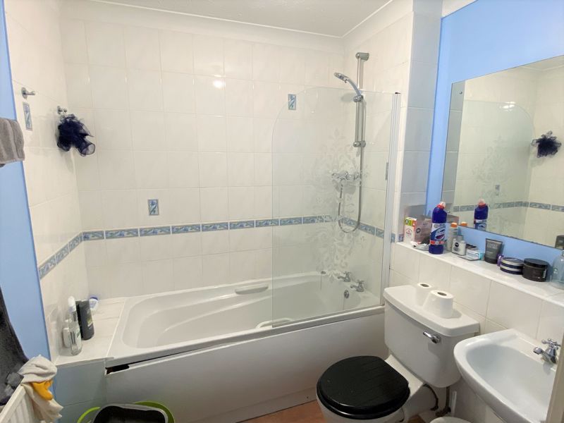 BATHROOM Panelled bath with tiled surround and thermostatic shower mixer attachment with rail and shower head. Pedestal wash hand basin. WC. Extractor. Shaver/light unit. Radiator. Ceramic tiled floor.