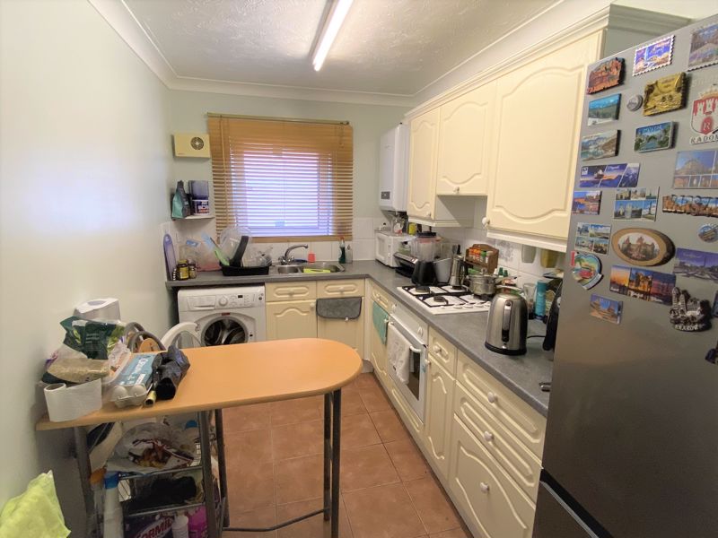 KITCHEN 10' 10'' x 6' 11'' (3.31m x 2.1m) Range of fitted base and eye level cupboards to 2 walls with contrasting work surfaces, inset 1½ bowl stainless steel sink unit and tiled splashbacks. Built-in electric oven, gas hob and extractor over. Wall mounted Combi gas boiler for domestic hot water and central heating system. Space for an upright fridge freezer. uPVC double glazed window.
