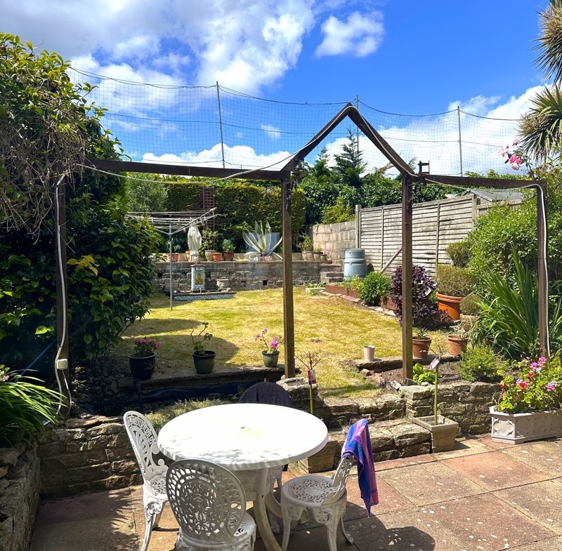 The rear garden is enclosed by a mix of timber fencing and hedging. A sunny patio leads up to lawn, surrounded by shrubs and hedges. It creates a quiet sanctuary to accommodate the family home.